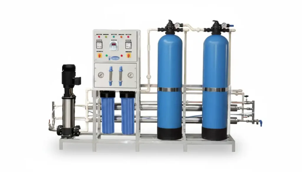 Complete range of water purification and treatment systems — compact RO coolers for offices to 50,000 LPH industrial plants and coin-operated Water ATM vending machines.